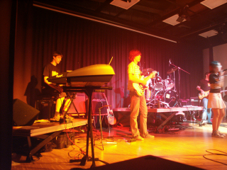 Hochspannung in der Mensa. Die Schüler - Rock - Band spielt 3 Stücke aus ihrem umfangreichen Repertoire.