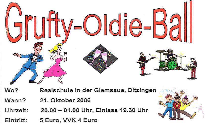 Unkostenerstattungsbetrag bei den Anwesenden bedanken! Gruftiball 2011Am Samstag, 15. Oktober 2011 findet er wieder statt!! Gruftiball 2010Der diesjährige Gruftiball findet leider nicht statt. Durch das Hochwasser am 4. Juli (Bericht Feuerwehr Ditzingen) wurde sehr viel zerstört und muss ersetzt werden. Wer möchte, darf gerne dem Förderverein eine Spende zukommen lassen.